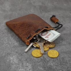 Leather Drawstring Pouch, Cowhide Storage Bag Small Waterproof Leather Pouch Vintage Jewelry Coin Purse, Wallet Gift (Small)