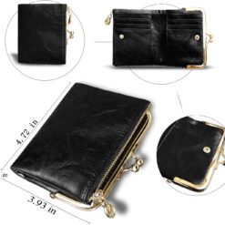 • Feature: Small bifold wallet for women simple, soft and durable stylish . Perfect for daily use and easy matches with any style wearing.Classic retro vintage Kiss- Lock wallet.