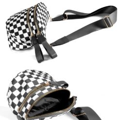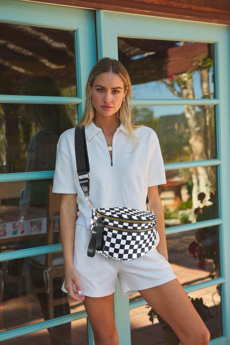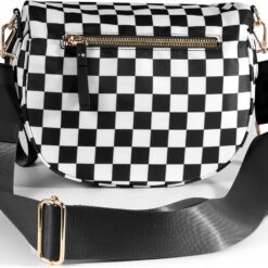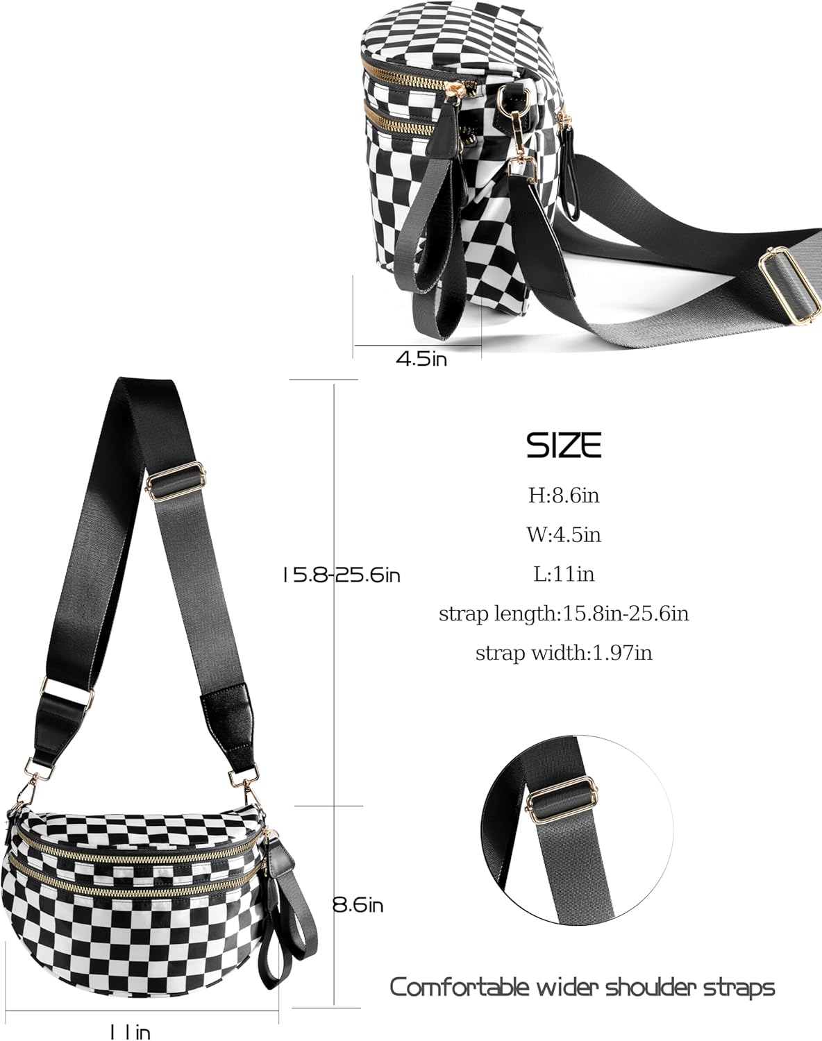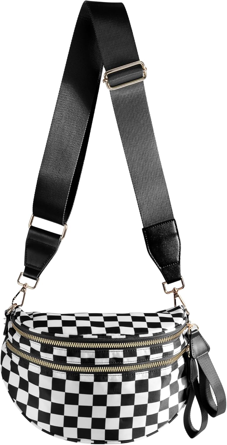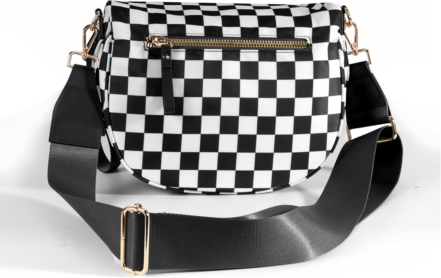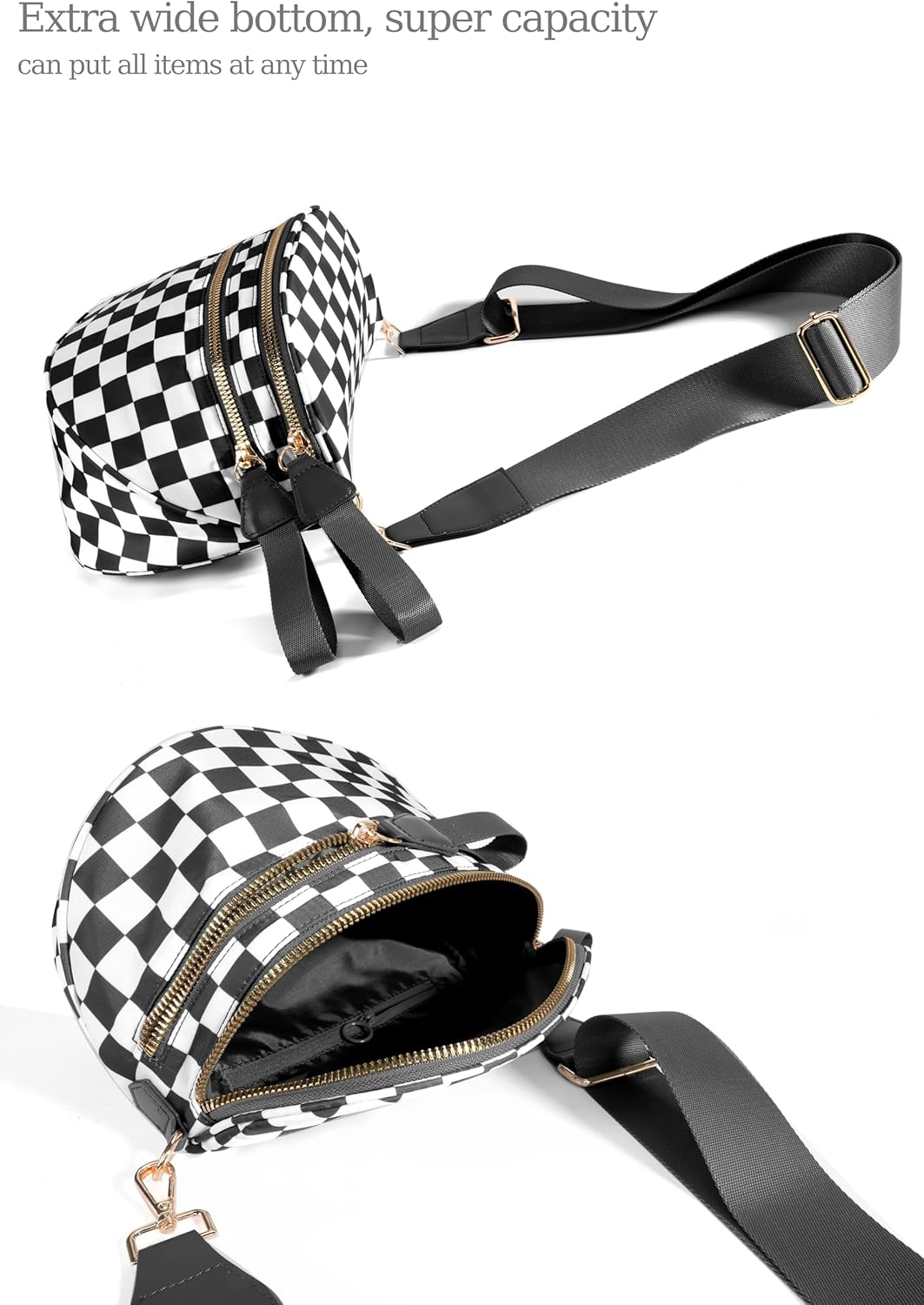 FEIBOON Spacious Checkered Nylon Crossbody Bag Bum Bag Checkered Handbags Wallets for Women