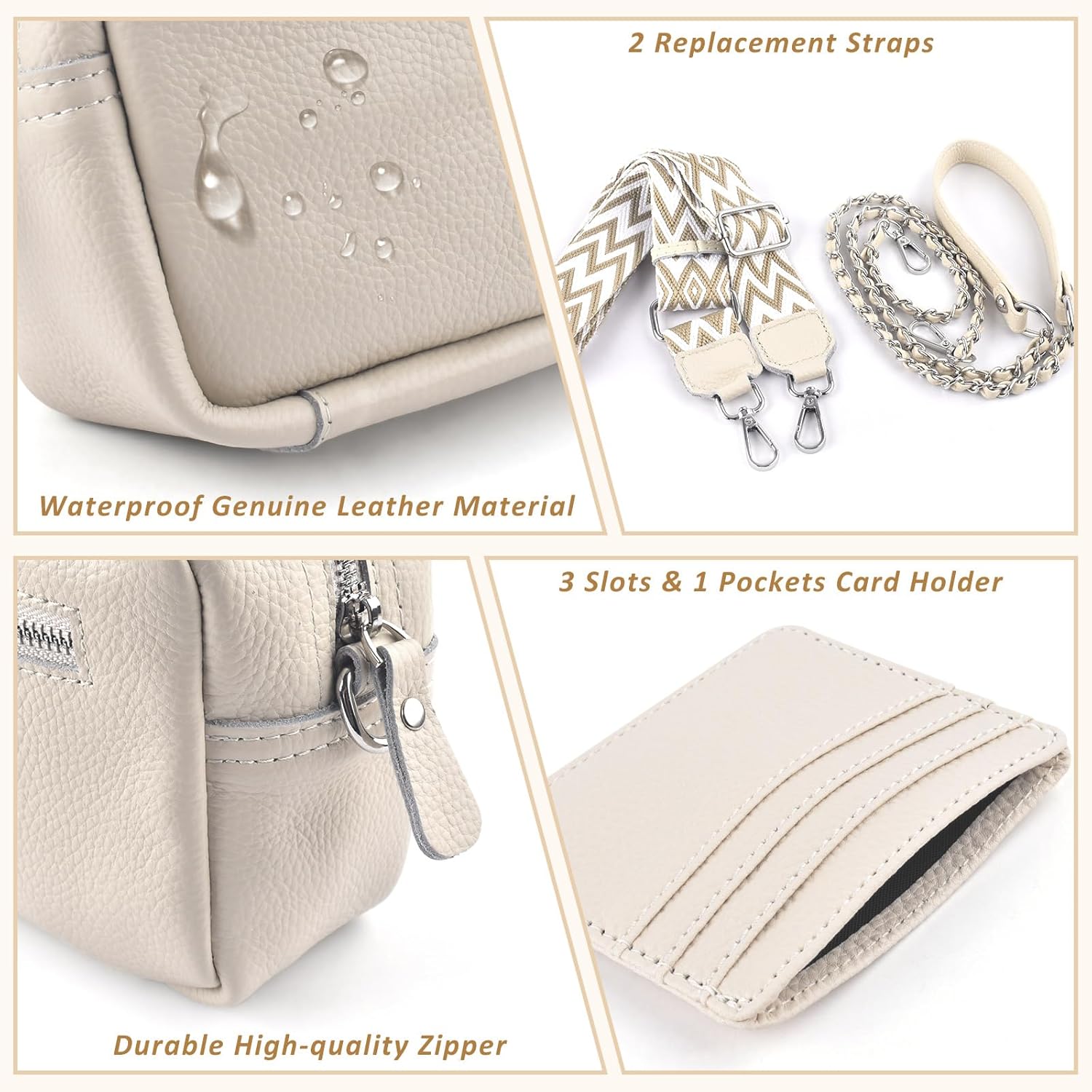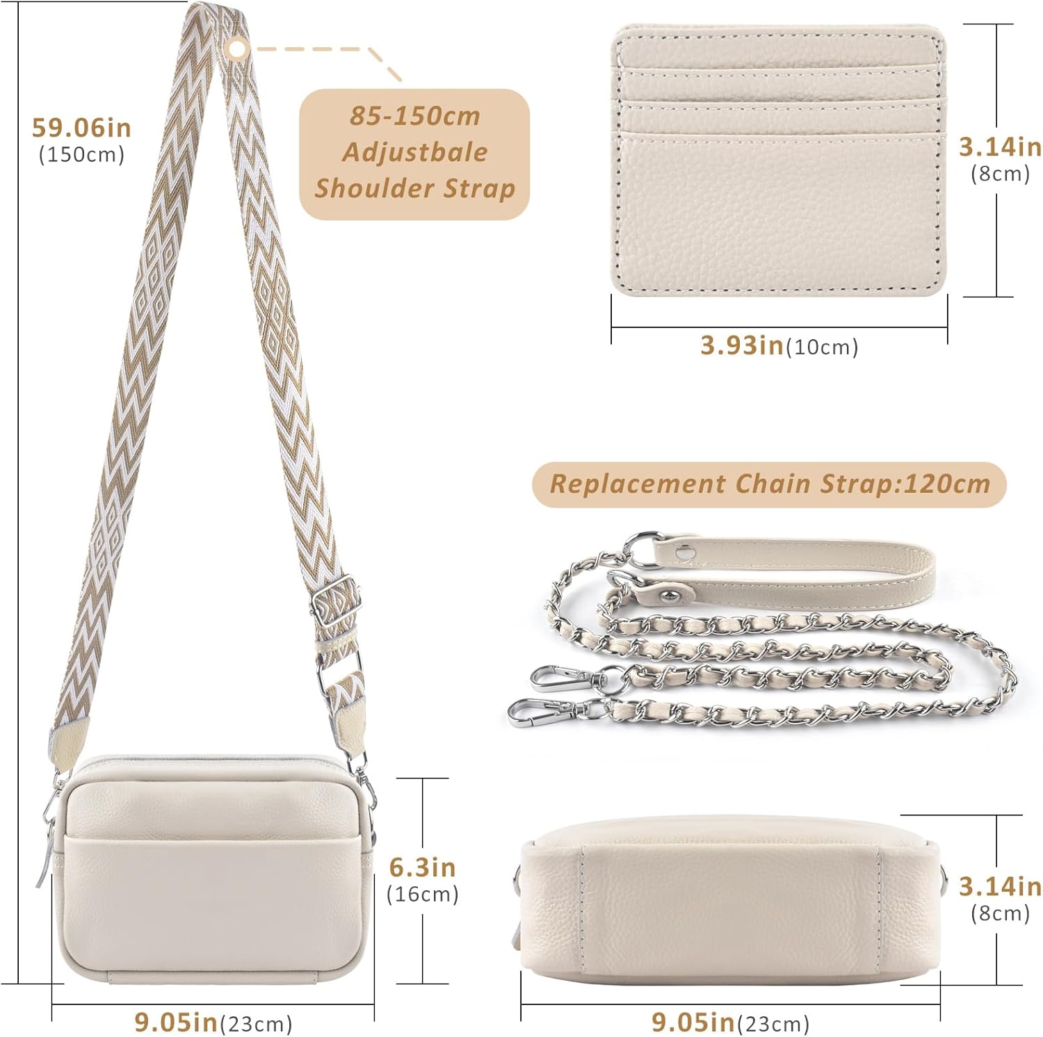 BROTOU Crossbody Bag for Women, Leather Handbag & Shoulder Bag with Adjustable Wide Strap, Chain Strap & 3-Slot Card Holder, Camera Cross Body Bag for Lady Girl Shopping Daily Use