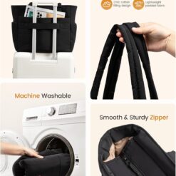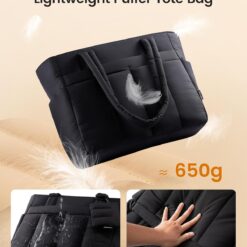 - 【Travel-Friendly & Machine Washable】This women’s puffer tote features extra-wide, comfortable handles for effortless carrying by hand or over the shoulder. The rear luggage strap allows attachment to suitcase handles, enhancing travel convenience. Fully machine washable and foldable, its high-stretch fabric retains its shape even after repeated washing.