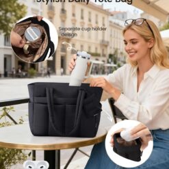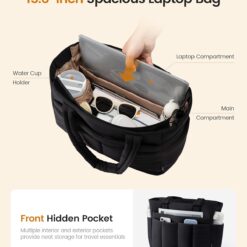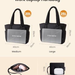 - 【15-Pocket Storage】This spacious handbag features a dedicated compartment for a 15.6-inch laptop, with an internal side pocket designed to accommodate a large water bottle such as 1.2L Stanley cup. Front and rear zip pockets, along with clever internal compartmentalisation, allow for effortless organisation of daily essentials including your laptop, iPad, A4 folders, wallet, and cosmetics.
