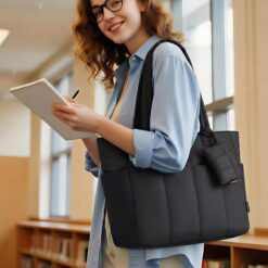 LOVEVOOK Tote Bag for Women, Lightweight Puffer Laptop Handbags Work Bags with Zip and Compartments, Large Capacity Quilted Shoulder Bag for Work, School, Travel, Beach, Gym