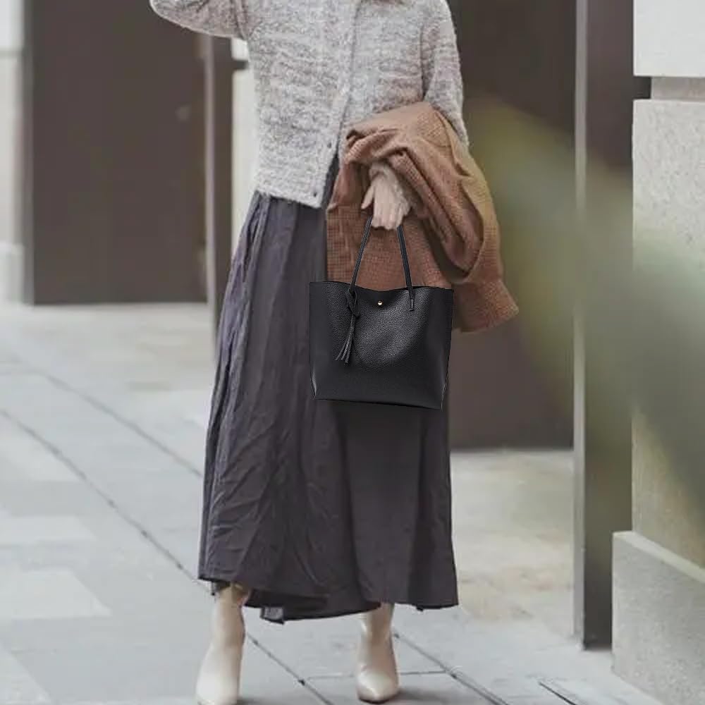 Ladies Handbag, Black Tote Bag for Ladies, Handbags for Women Soft Leather Large Capacity Waterproof Modern Handbag for Work School Shopping Leisure