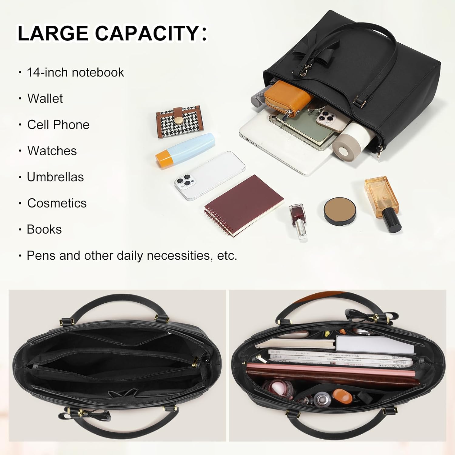 - MULTIFUNCTIONAL TOTE BAG: Tote bags for women have 1 front pocket with magnetic closure, 2 main compartments, 1 zippered compartment, 1 interior wall zippered pocket, 2 slip pockets and 2 pen pockets. The large-capacity multi-pockets design can easily organize your books, files, cosmetics, toiletries, cell phone, wallet, umbrella, bottle and so on.