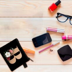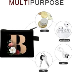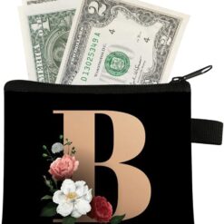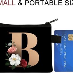 FAVORTALK Coin Purse Women Initial Purse Small Coin Pouch Portable Coin Bag Zipped Mini Slim Coin Purses for Girls Men Black Flowral Wallets – 13604