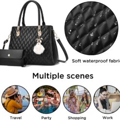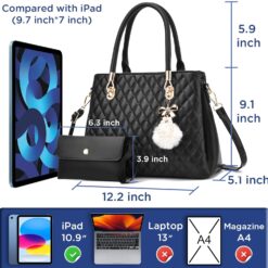 I IHAYNER Womens Leather Handbag and Wallet Set Top Handle Tote Satchel Shoulder Bag for Ladies with Pompom 2 Piece Purse Set
