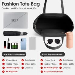 KALIDI Women’S Large Leather Tote Bags For Work School, Featuring Metal Zip Fasteners And Pockets