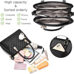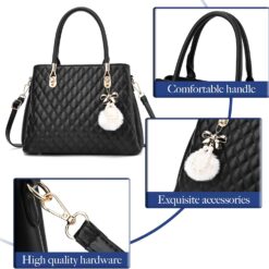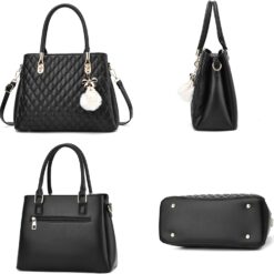 I IHAYNER Womens Leather Handbag and Wallet Set Top Handle Tote Satchel Shoulder Bag for Ladies with Pompom 2 Piece Purse Set
