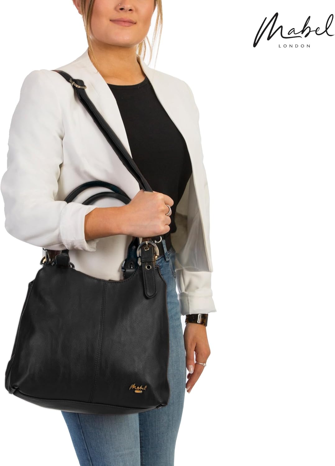 Mabel London Shoulder Bag for Women – Faux Leather Lightweight Crossbody Handbag – Vegan Everyday Handbag with Zipped Compartments – Ideal for Work, Travel & Casual Outfits